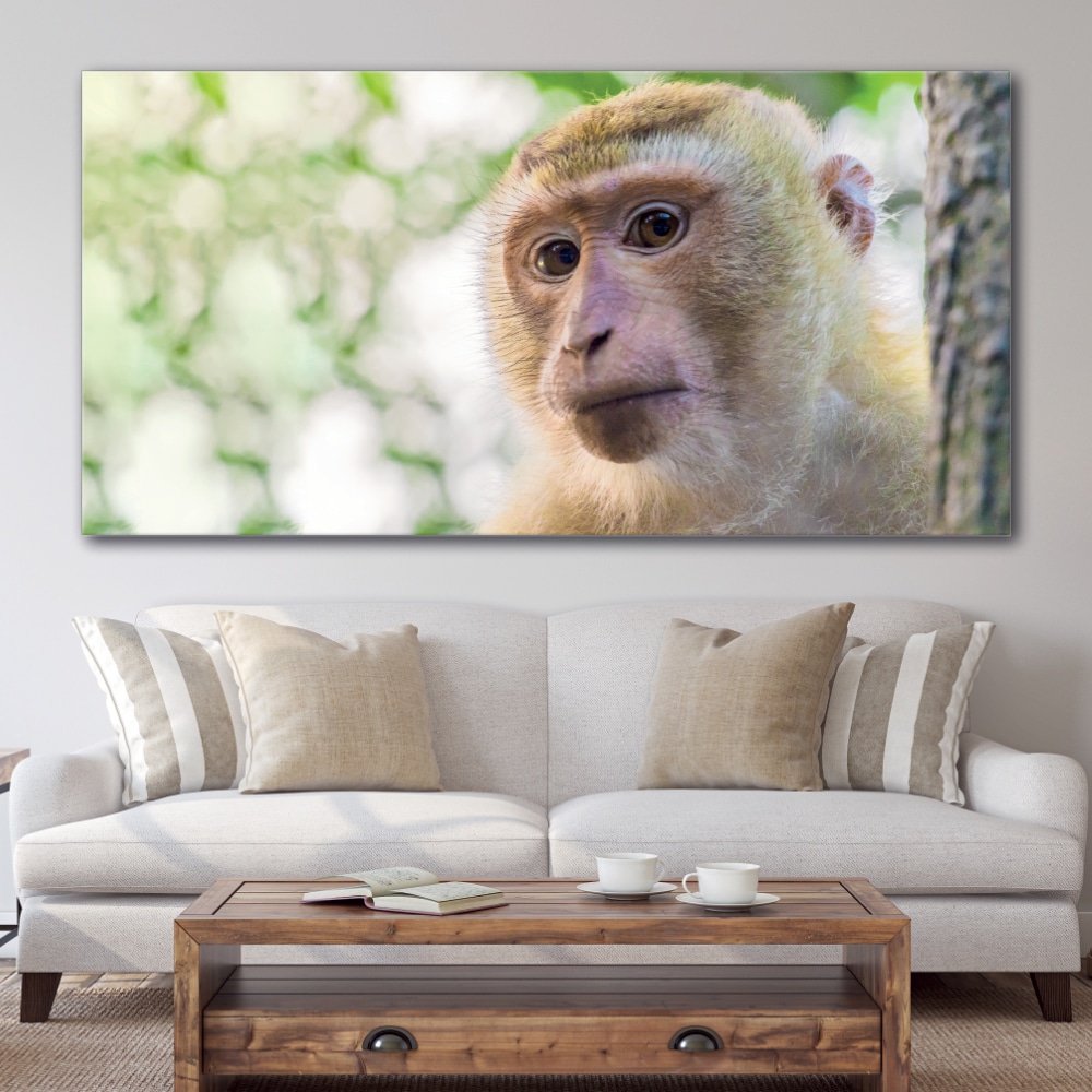 Naturen i hjärtat av ditt vardagsrum! Bjud in naturen i ditt hem med vår målning Curious Monkey. Den här målningen kommer att ge dig lugn och välbefinnande genom att ge dig ett miljöombyte. Du kommer att älska den här lilla apans djupa och nyfikna blick.