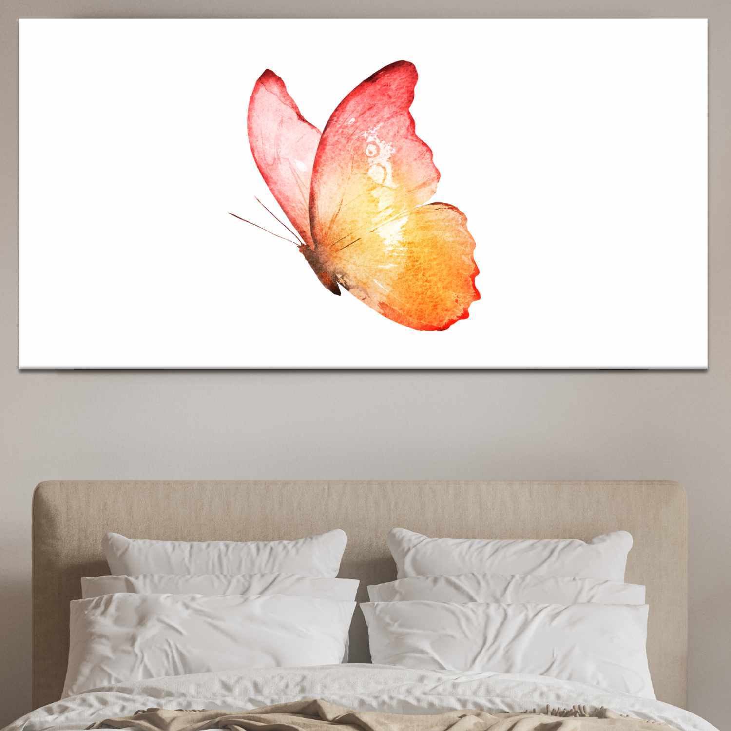 Det här konstverket föreställer en vacker rosa och gul fjäril isolerad på en vit bakgrund. En färgstark målning för naturälskare.