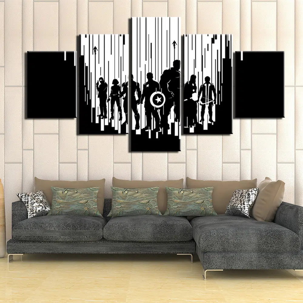 Den här svartvita Avengers-bilden ger din inredning ett modernt och futuristiskt utseende. Den här svartvita tavlan passar perfekt till din moderna och rena inredning, samtidigt som den klär dina väggar.