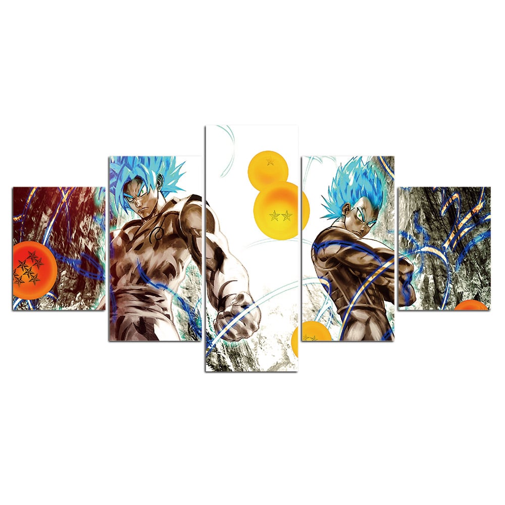 Den här målningen är en teckning direkt från en manga. Den visar Son Goku och Vegeta i Super Sayian Blue-läge med Dragon Balls.