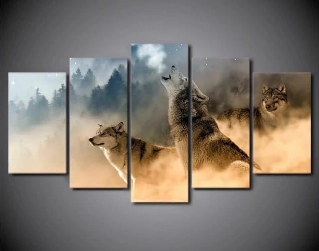 Skandinavisk målning vargar i snön